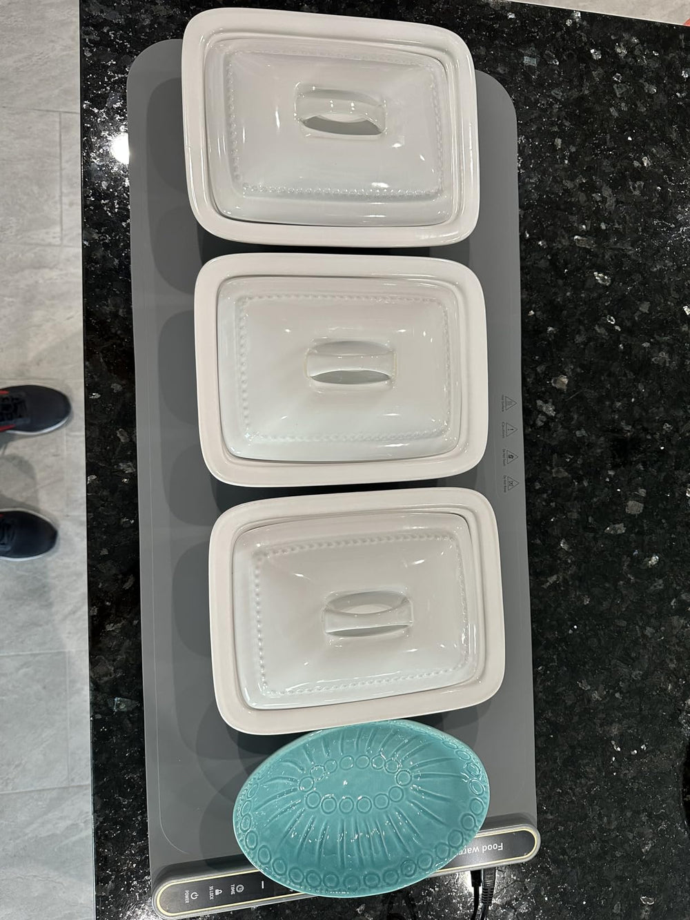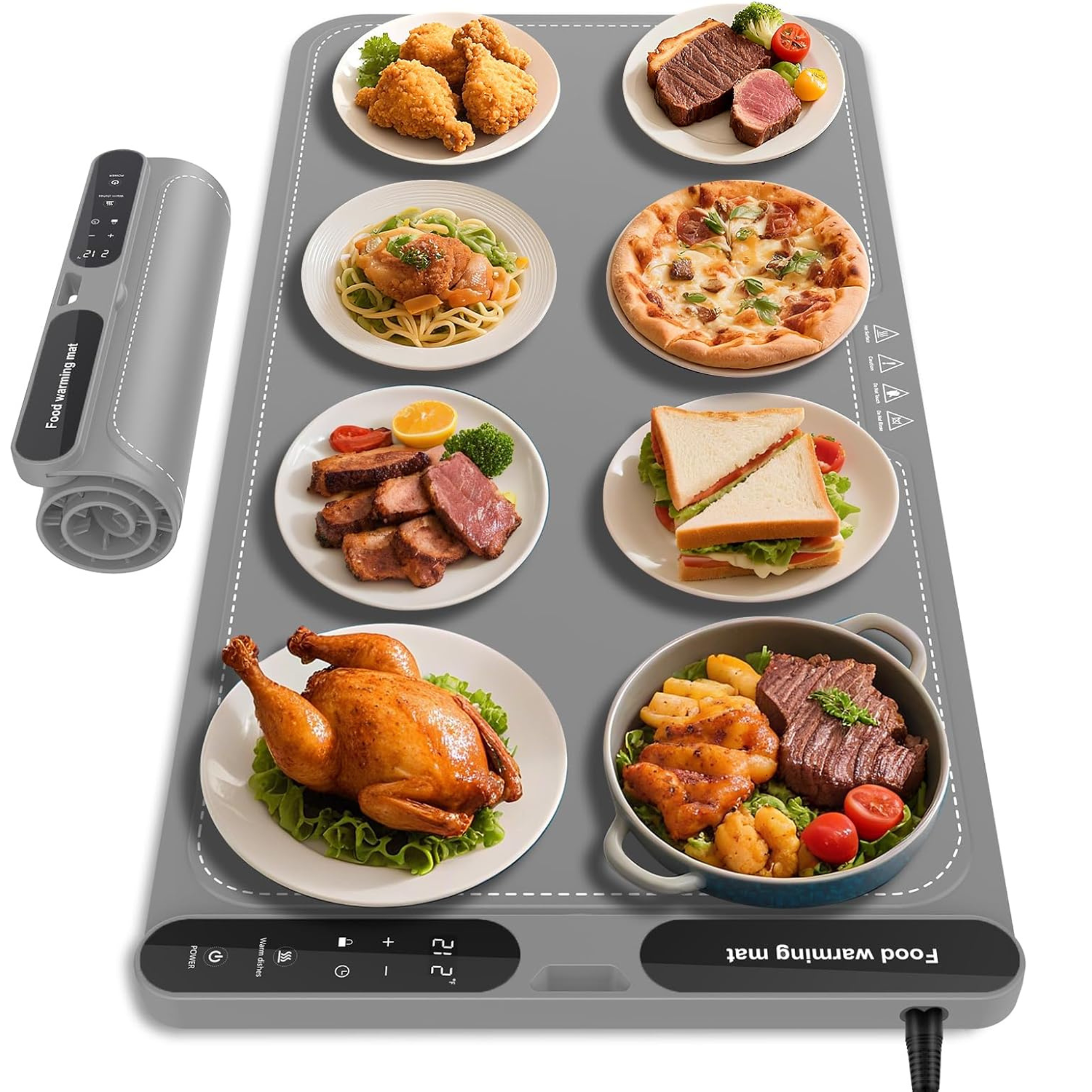 I mainly bought this to keep side dishes warm while the rest of dinner finishes up. Honestly, it surprised me, it heats up quick and doesn’t fluctuate like warming trays I’ve used before. I’ve had rice, veggies, and even mac and cheese on it and everything stayed hot without drying out. It’s slim enough that I keep it tucked on my counter all week.
